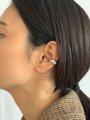 耳のかなり上の方の薄いところから入れて下の凹み部分(奥の方まで入れ込んで)にはめるように下げて装着します。